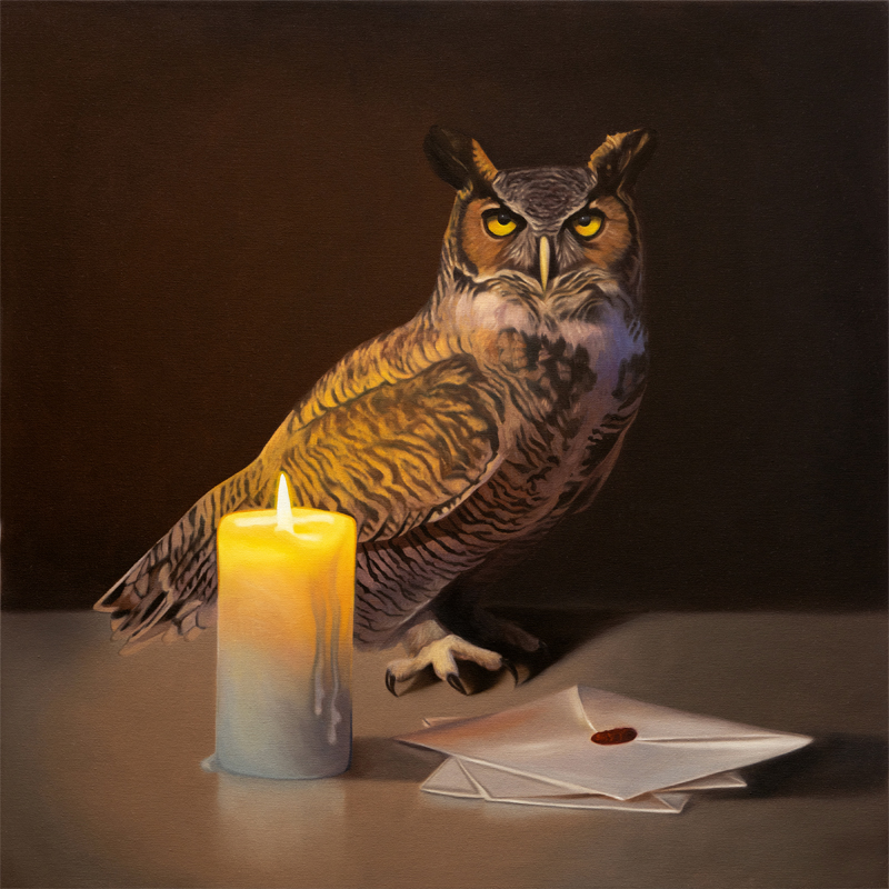 It’s that time of year where I begin binge-watching Harry Potter… I don’t care how old I am – HP will never get old! :). Here is my ode to the delightful series… This painting features a Great Horned Owl standing next to a candle-lit trio of letters with a dark and moody background. This painting will be available at a 48 hour auction starting Thursday, October 13th, at 7pm CST and ending Saturday, October 15th, at 7pm CST.