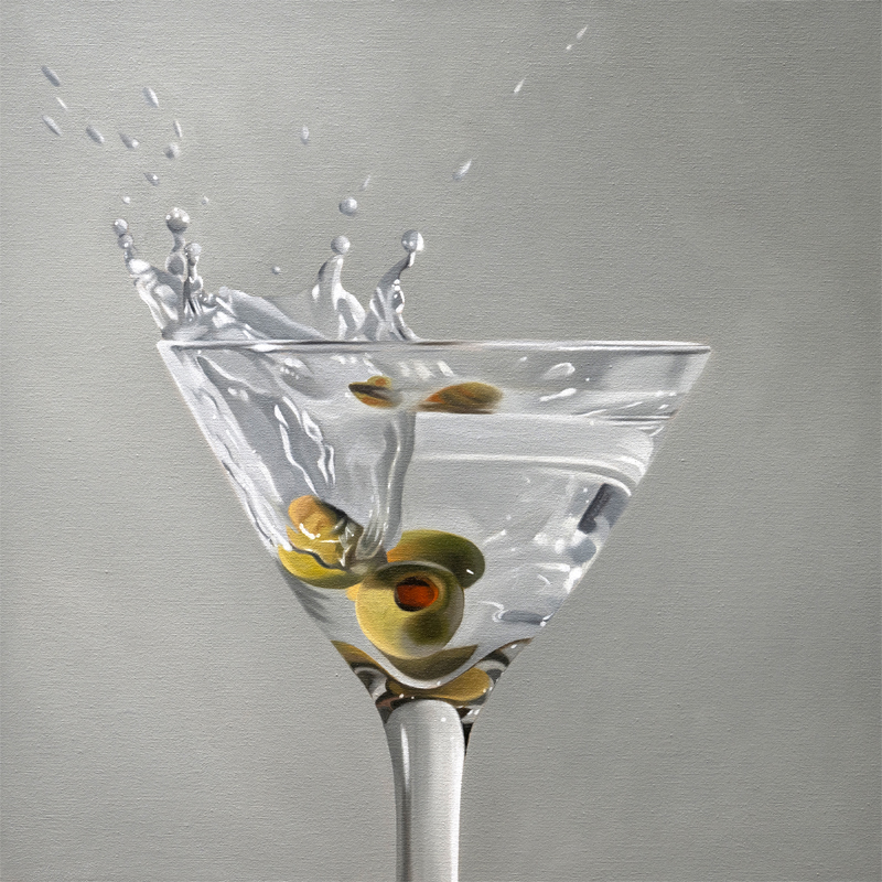 This painting features a green olive dropping into a martini and creating a bit of a splash.