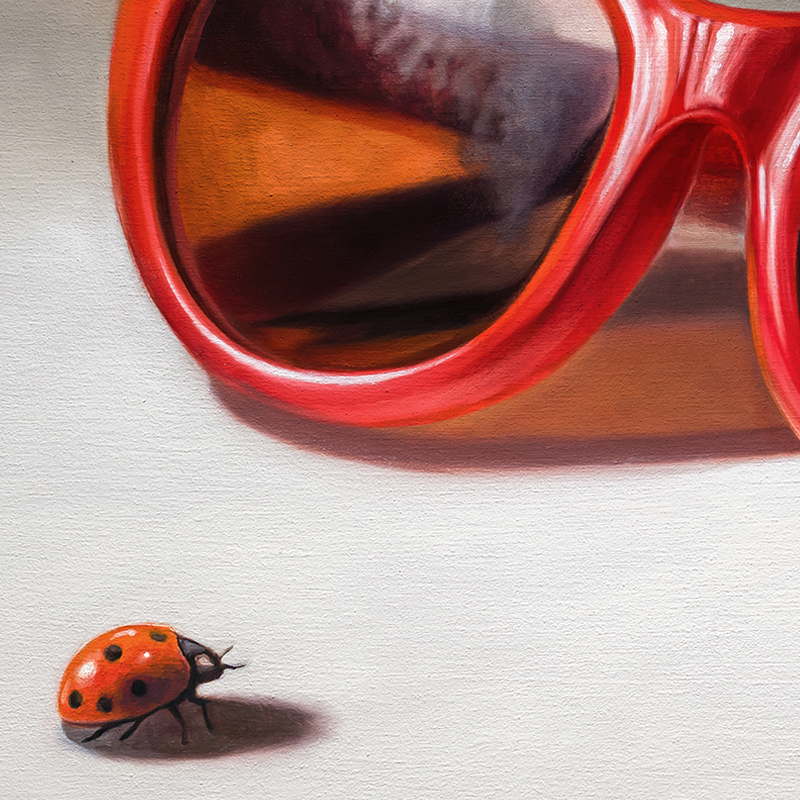 This week’s painting pairs well with the first day of summer: a bold red pair of cat-eye sunglasses and two tiny ladybugs, perfectly matched in color and mood. I’ve been enjoying pairing man-made objects with little glimpses of wildlife and this one came together like it was meant to. A quiet moment of warmth, light, and the kind of stillness that feels like summer. May the season bring you small joys… and maybe a few ladybugs, too 🙂